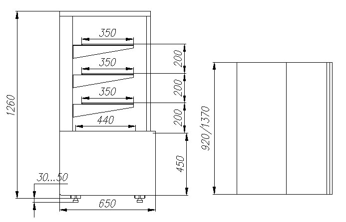 Эспозиц. площадь: 860х440 мм + 3 полки (860х350 мм)