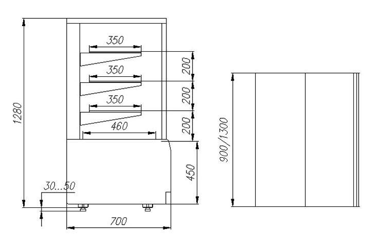Эспозиц. площадь: 1236х460 мм + 3 полки (1230х350 мм)