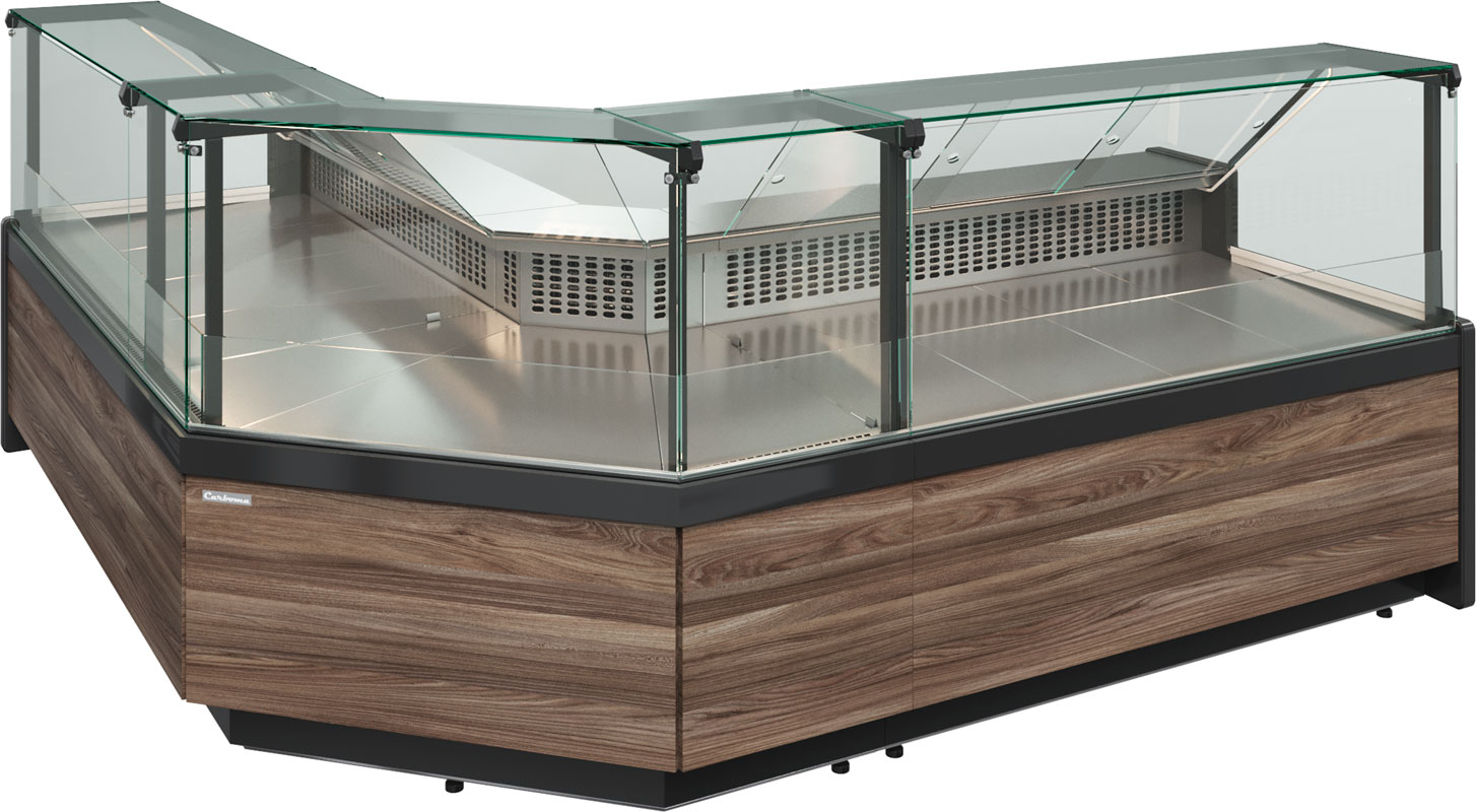 Морозильная витрина Carboma GC111 SL 0,94-1 (без боковин) с рабочей температурой до -18 °C — компактная. Ее длина при установке в линию составляет 94 см. При отдельной ее установке нужно недорого докупить боковые панели со стеклопакетами. Они увеличат длину до 103 см.