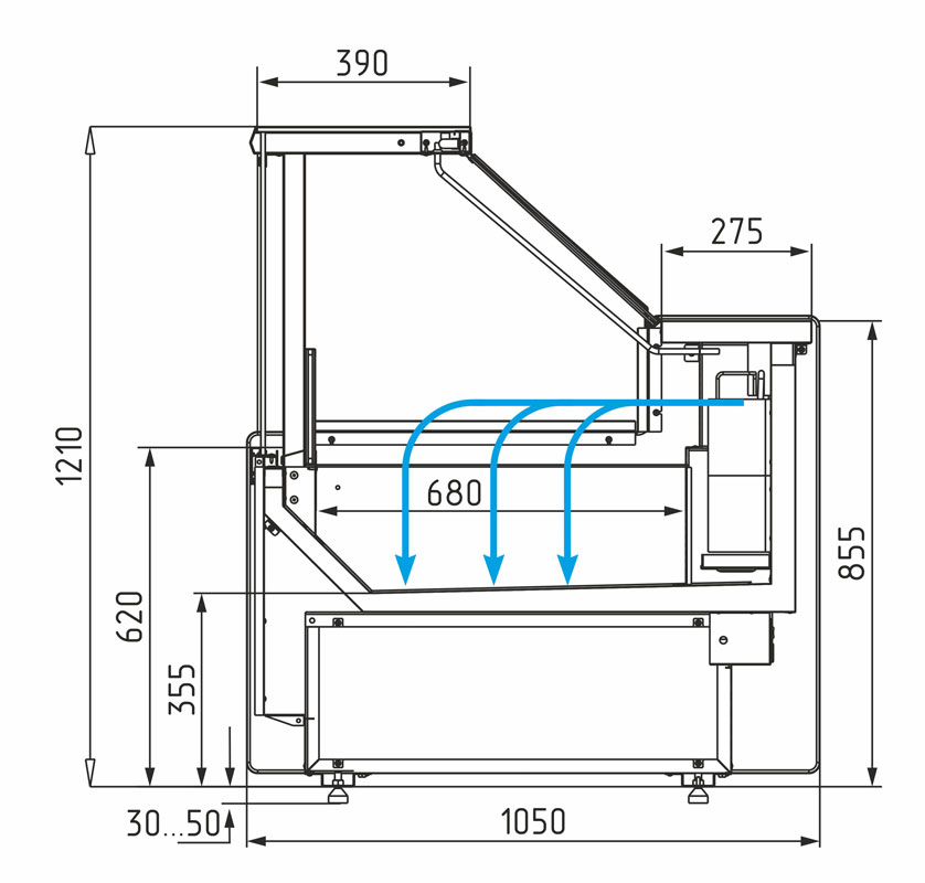 - лишь немного дороже стоит такая витрина с принудительным охлаждением.