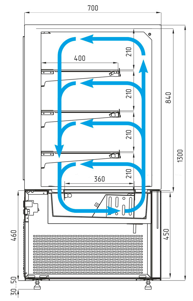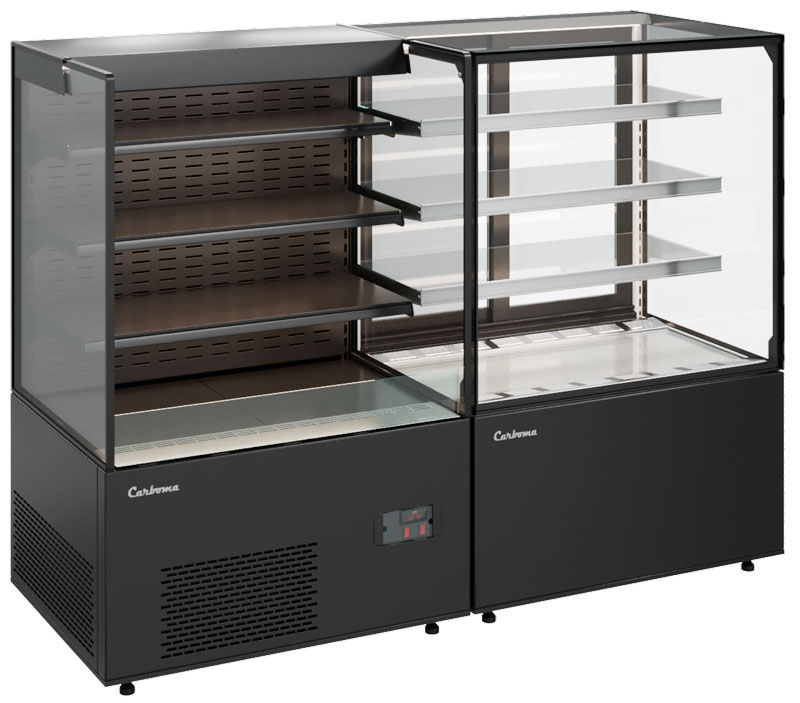 Кондитерская витрина Carboma KC71-130 VV 1,2-1 длиной 120 см достаточно вместительна. Помимо поверхности экспозиции, оснащена тремя полками. О них стоит рассказать отдельно. Они: