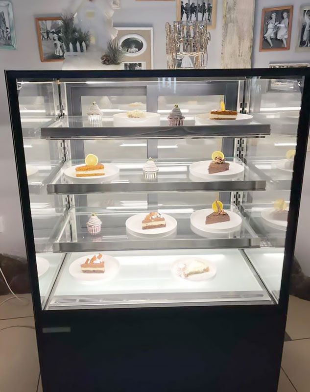 Витрина с рабочими температурами в пределах 2-8 °С подходит для тортов, выпечки, творожных, сливочных и других десертов.